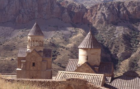 Armenien ist heute ein kleines Land, mit knapp 30’000 km² um ein gutes Viertel kleiner als die Schweiz und mit gut 3 Mio. Einwohnern dreimal kleiner als unser Land. Die Armenier wanderten, wie Herodot (ca. 480–420 v. Chr.) ab dem 8. Jahrhundert vor Chr. aus Thrakien stammend, ostwärts und setzten sich im Reich der Urartäer fest. Ab dem 5. Jahrhundert vor Christus wurde Uratu dann ein Teil des (persischen) Achämenidenreichs. Unter Tiridates III wurde Armenien um 310 das erste christliche Land der Welt. 1918 entstand die erste Republik Armenien, die 1922 in die Sowjetunion eingegliedert wurde. 1991 wurde Armenien, wie auch alle anderen Sowjetrepubliken, politisch selbstständig. Der Konflikt um die Region Berg Karabach, der zwischen 1918 und 1923 erstmals mit Aserbaidschan ausbrach, ist bis jetzt nicht beigelegt; die Friedhöfe sprechen dazu Klartext – unzählige, mit Flaggen und Blumen geschmückte Gräber legen trauriges Zeugnis ab von den kriegerischen Auseinandersetzungen 2020 und 2023.